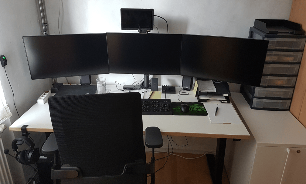 The experiment went fine and I decided to equip everyone with an additional “videoconference display”. The new models were bigger and better. If an employee didn’t see the benefit of it, I didn’t force them to install one in their home office, but every workplace in the office has at least four monitors. Guess were the original one is still installed? I made sure everybody had a better monitor than me.